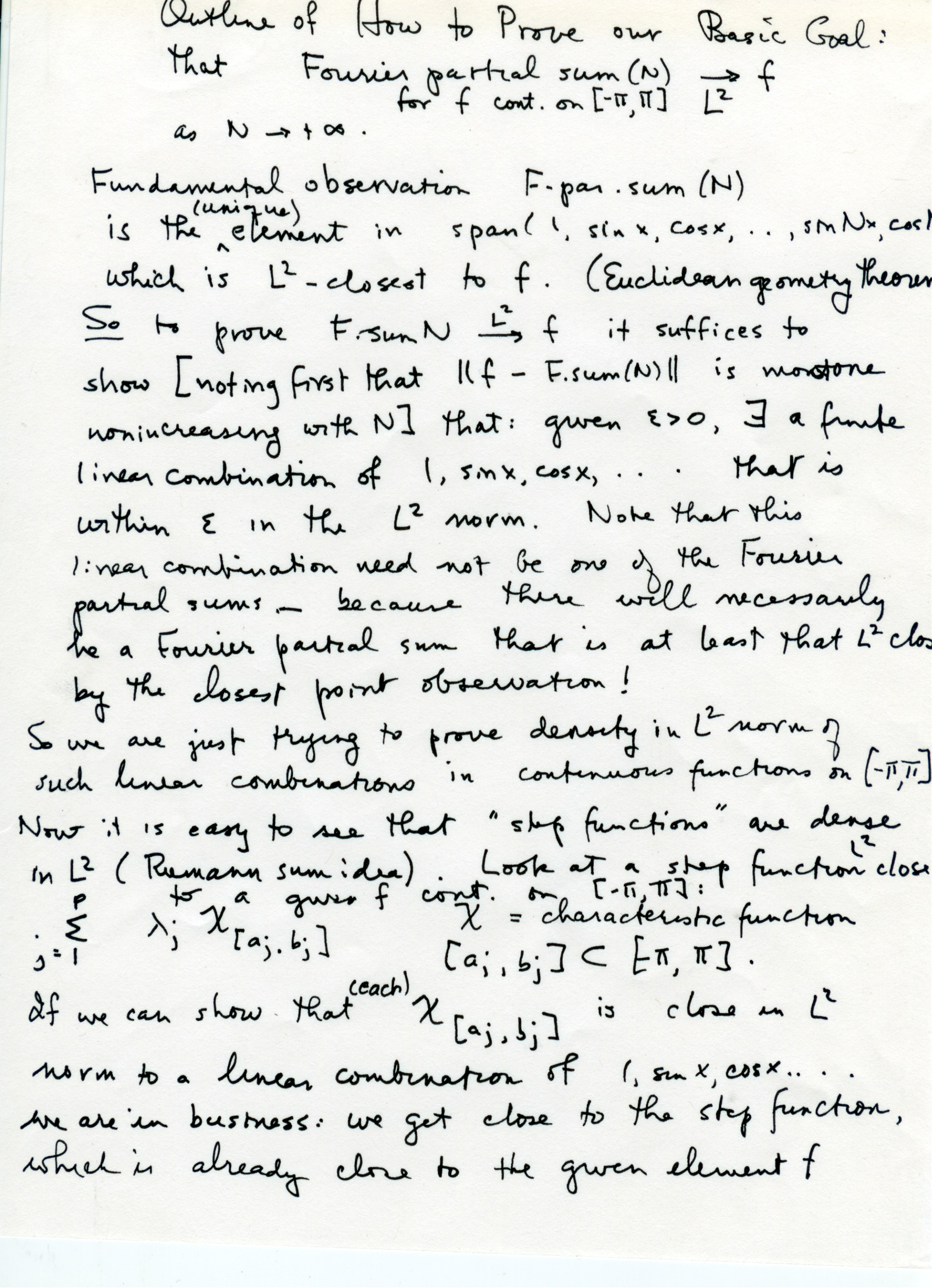 Outline of how to prove our basic goal about Fourier partial sums.