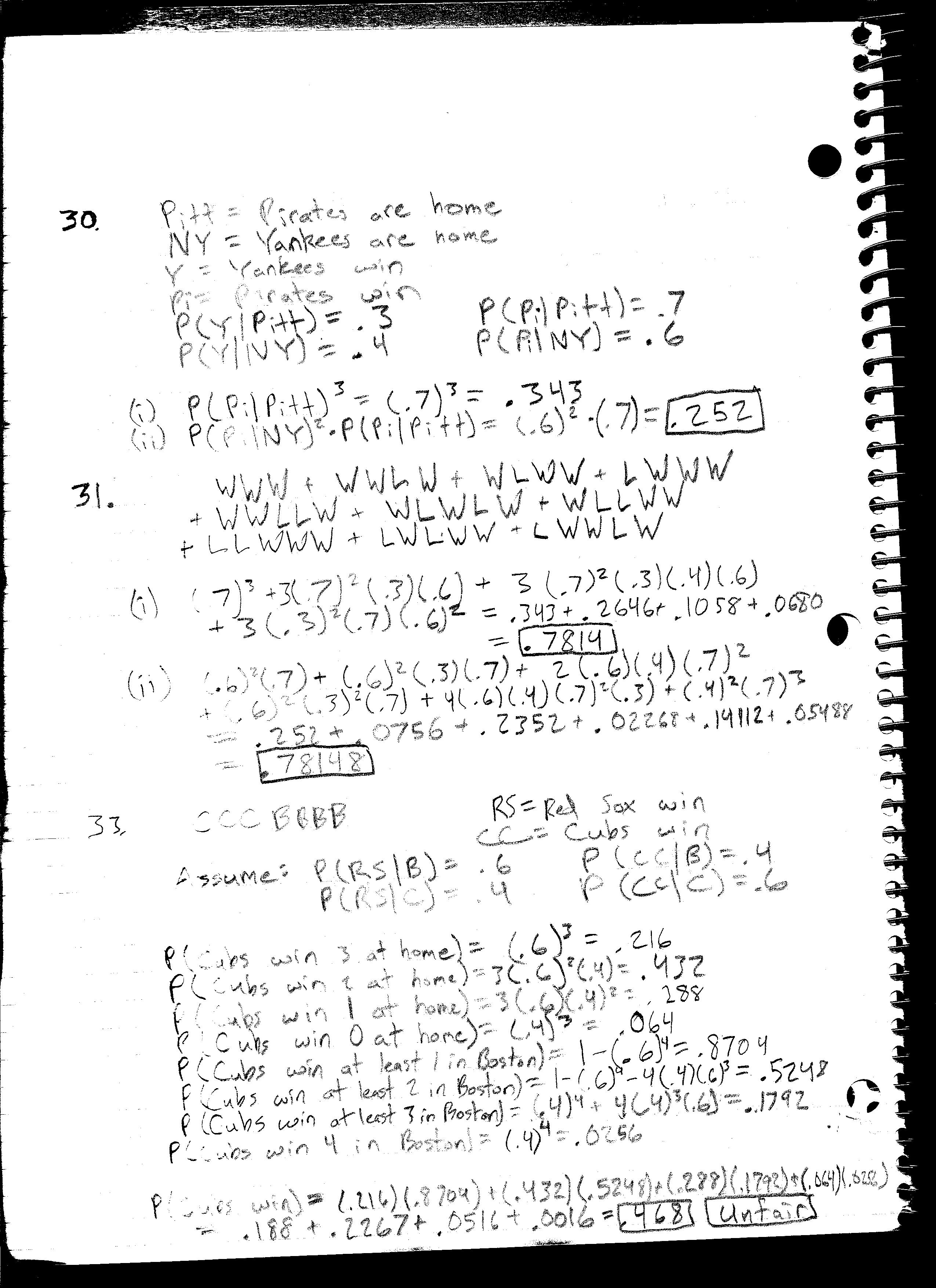 Incomplete solutions are handwritten and scanned: