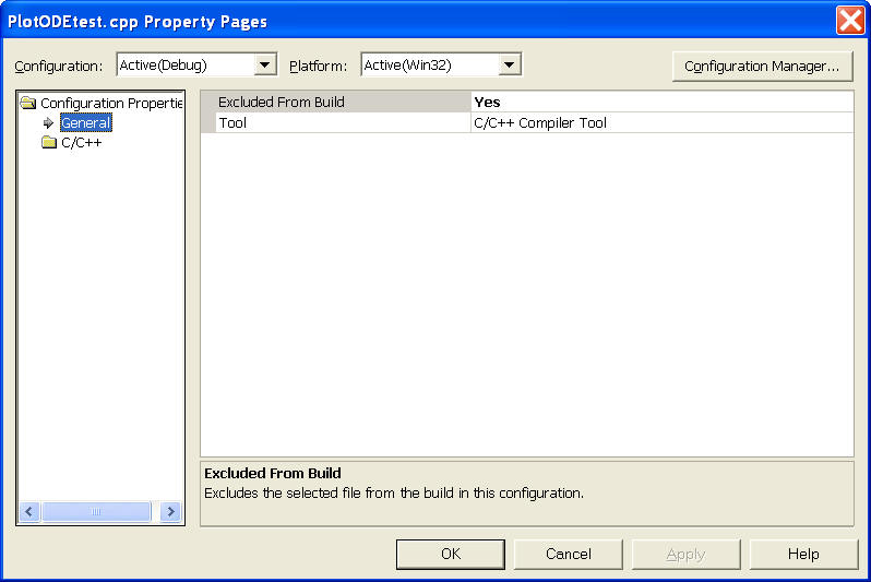 file to be excluded from build, choose Properties, Configuration Properties